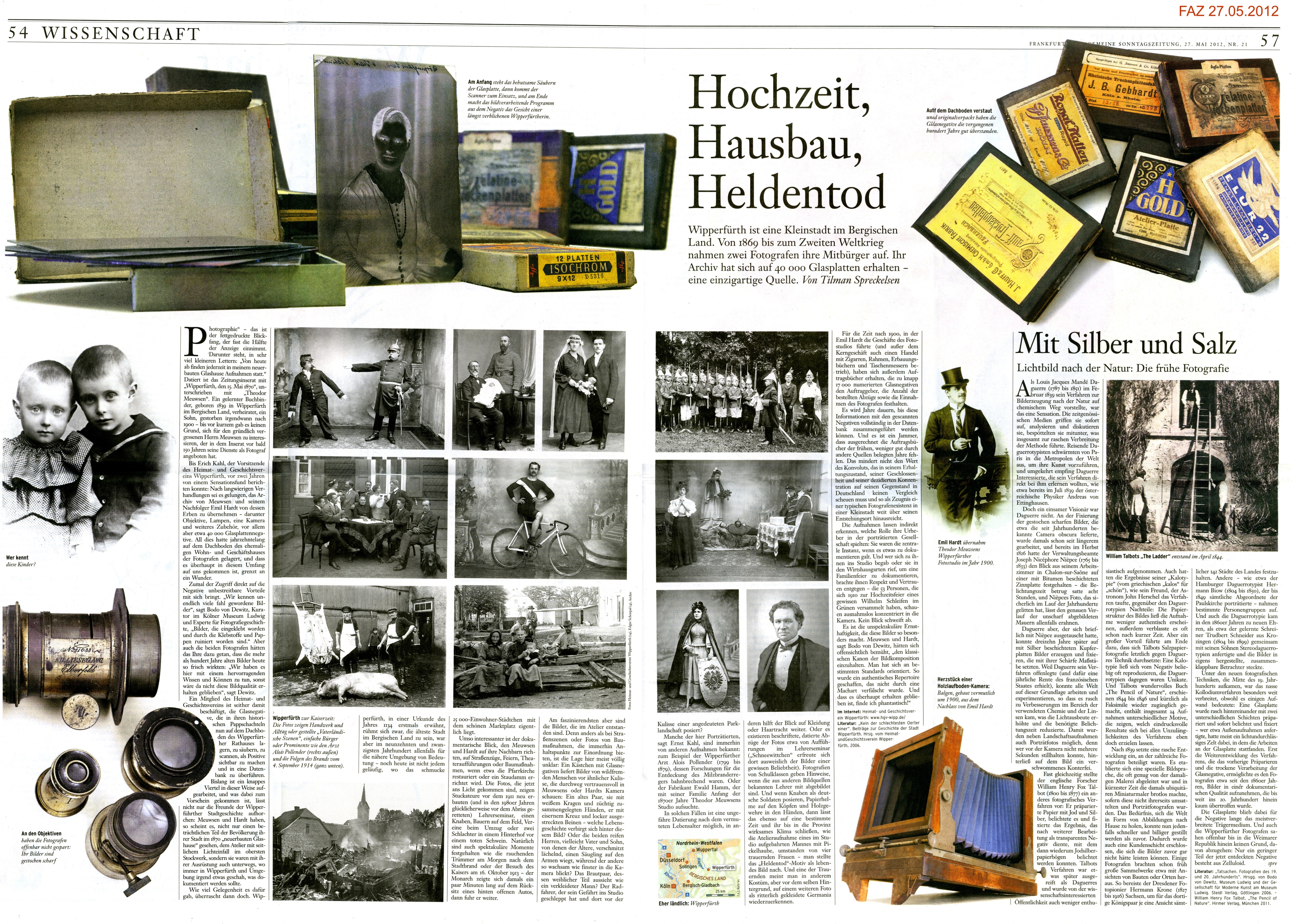 Die Frankfurter Allgemeine Sonntagszeitung berichtete in ihrer Ausgabe vom 27.05.2012 über die Glasplatten-Negative derFotografen Meuwsen und Hardt.