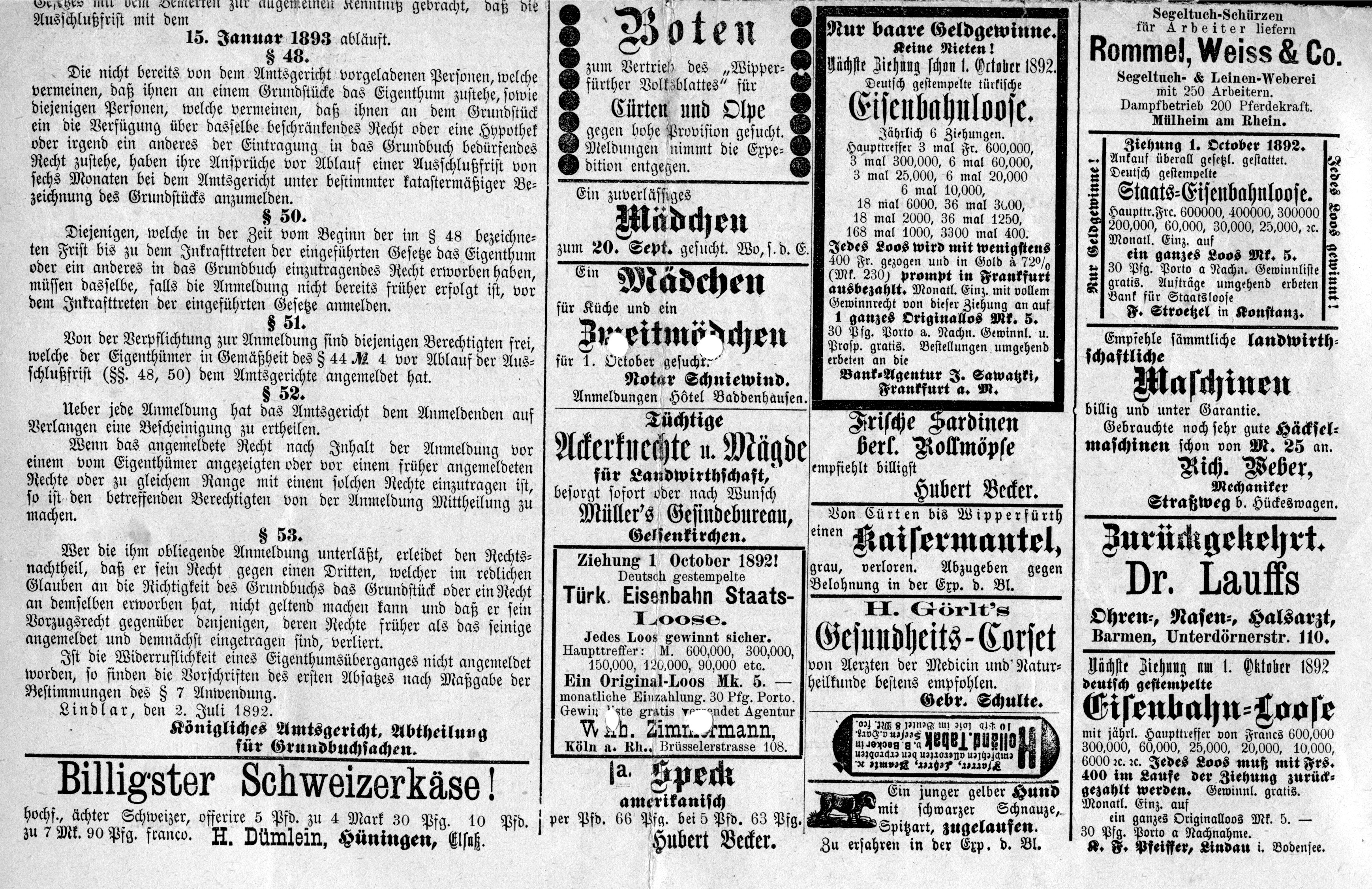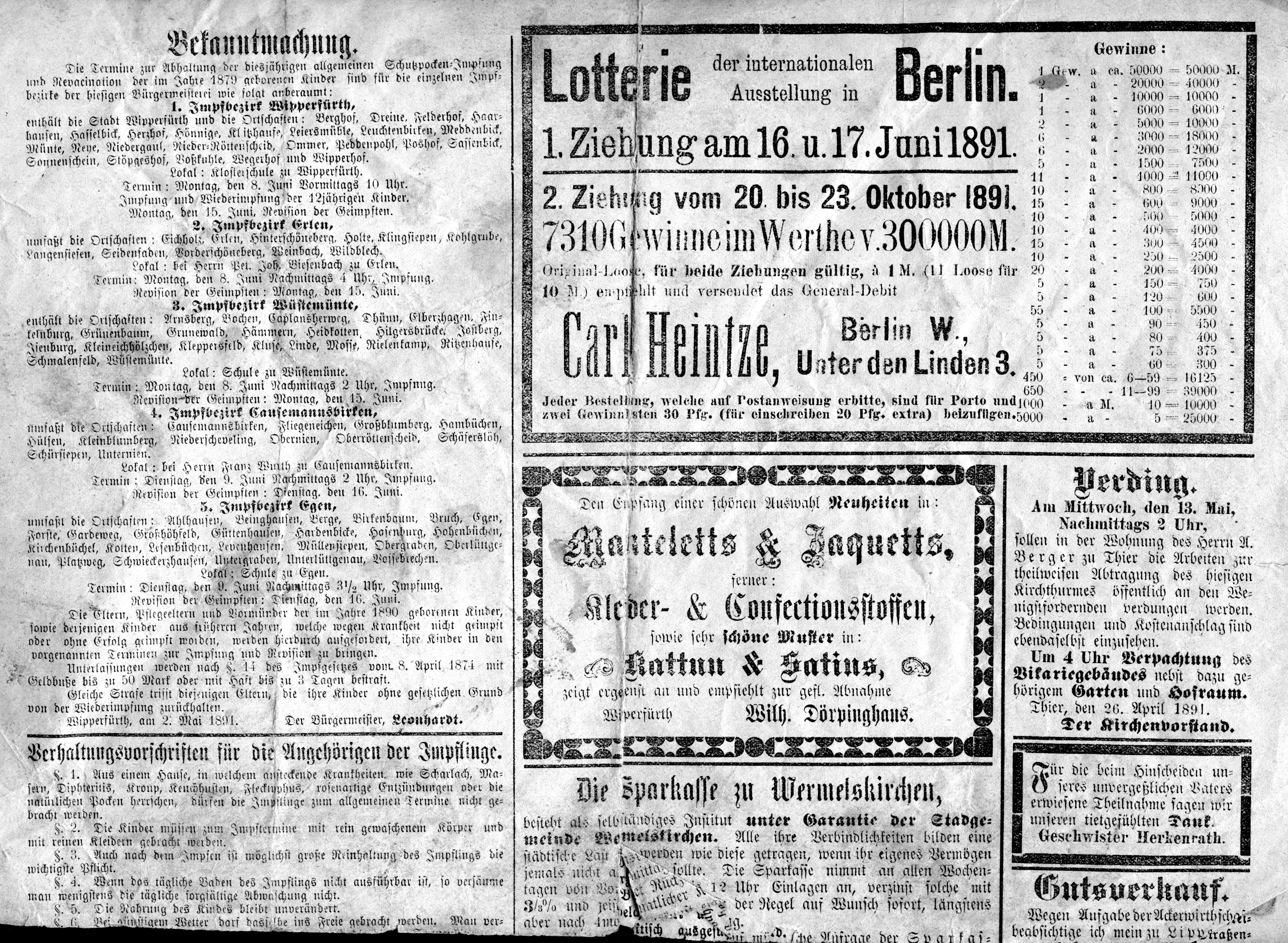 Hier geht es zu weiteren alten Zeitungsanzeigen