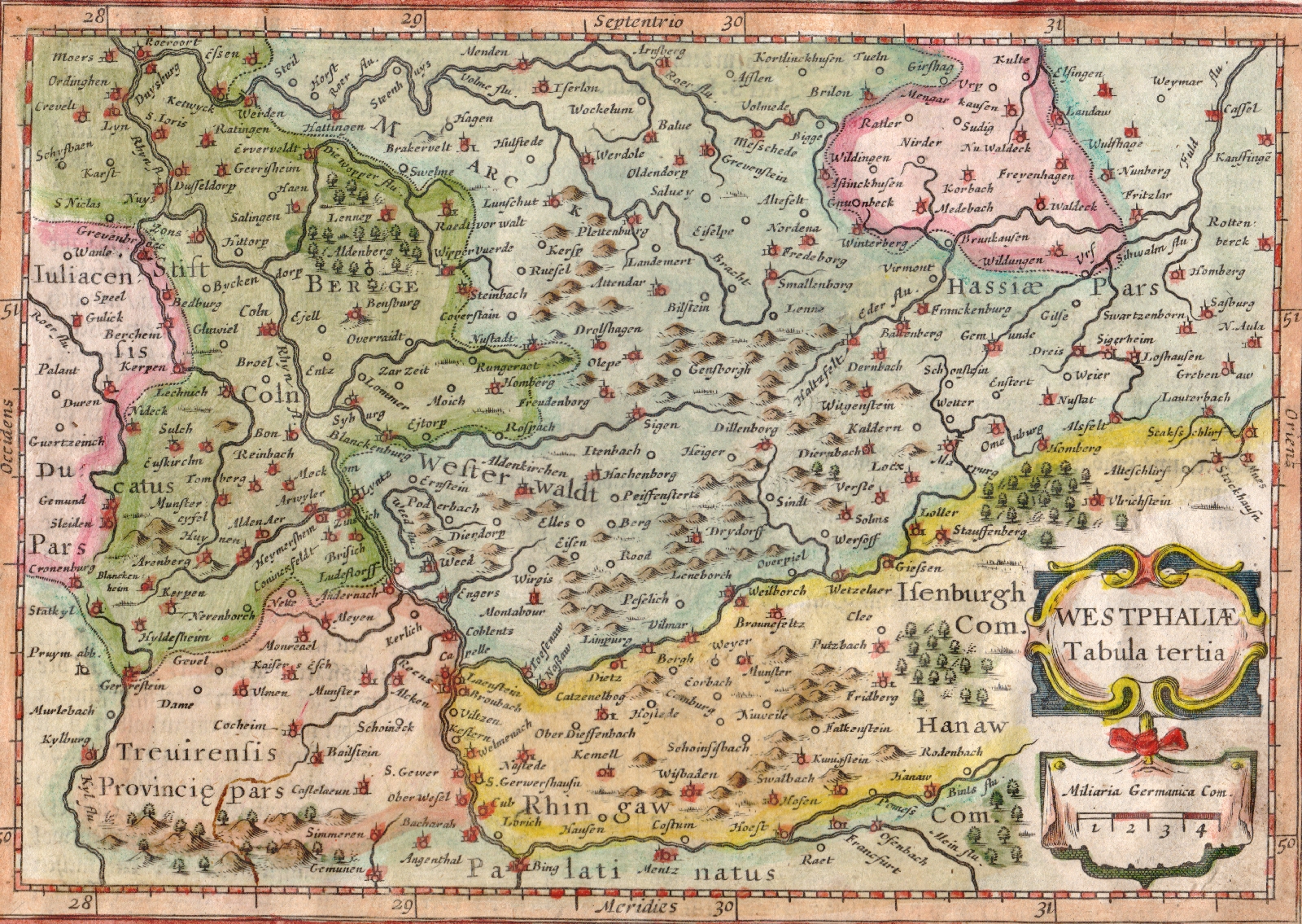 mit Millieria Germanica communia. Blaeu/ Janssonius Erben, um 1680 50 x