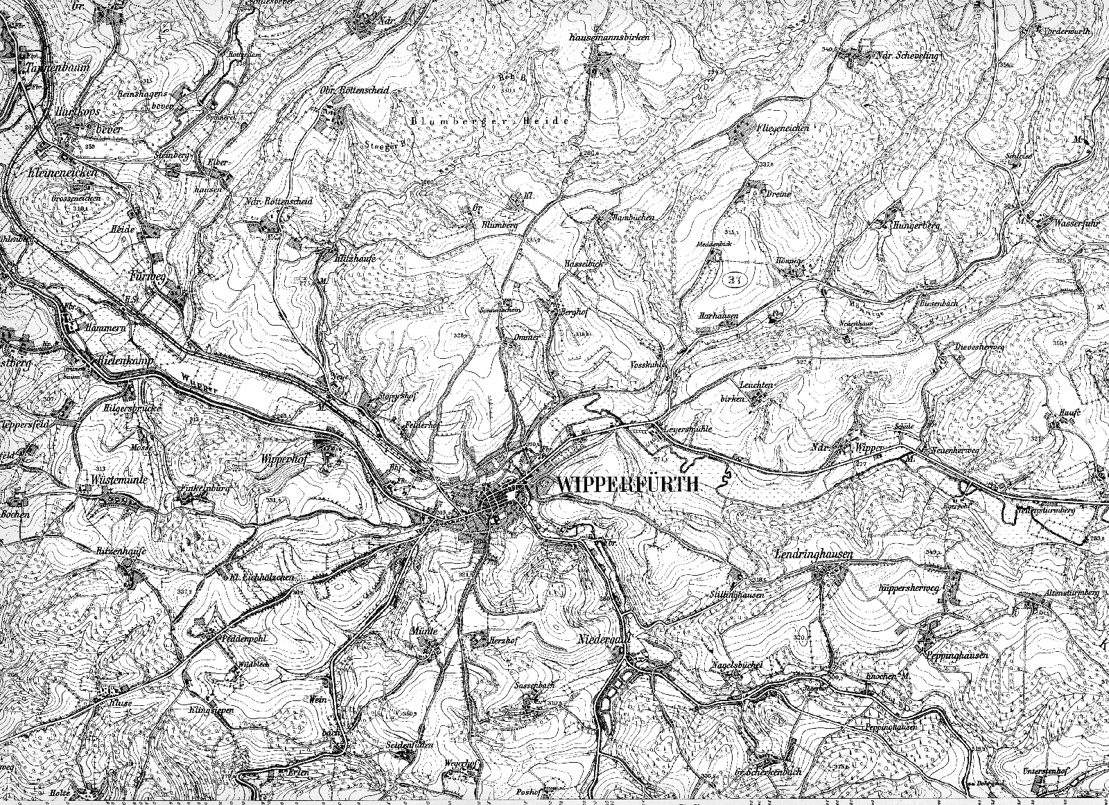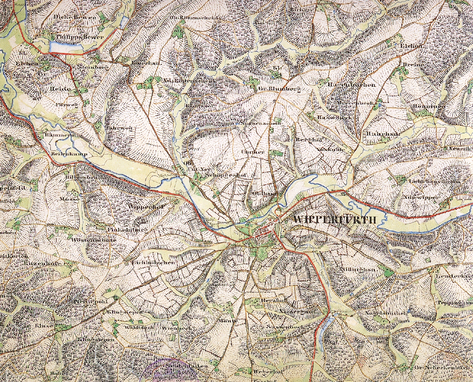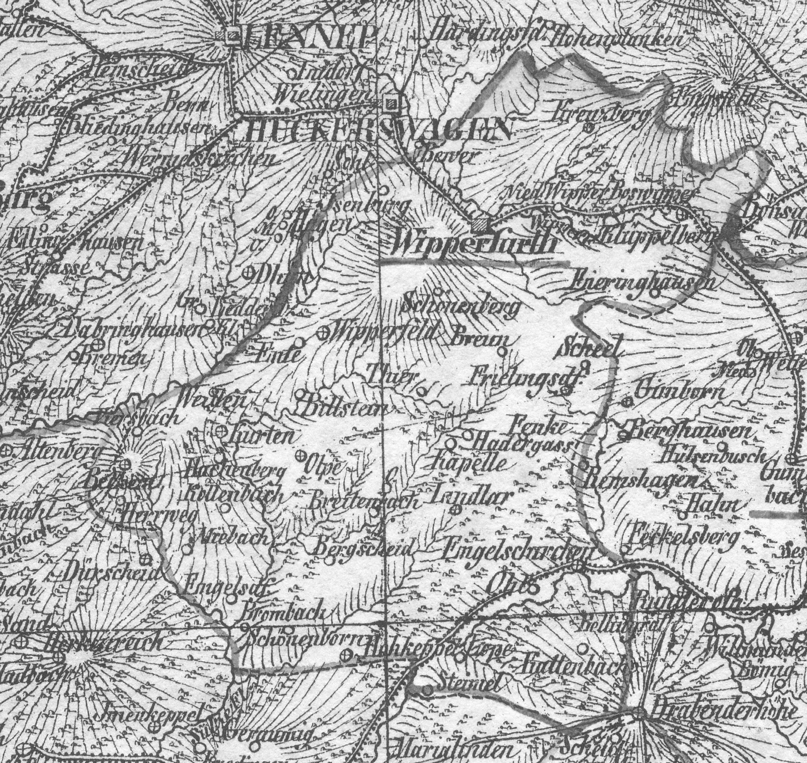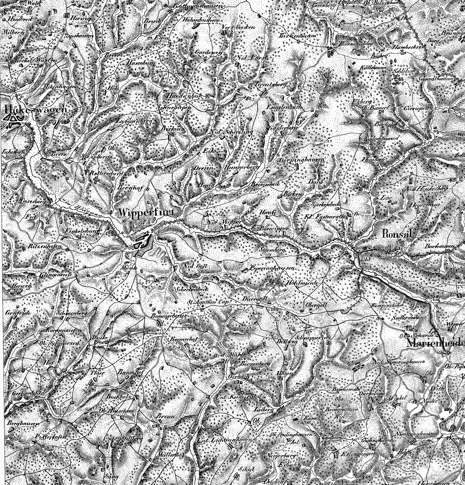 Linie, das historische Kartenbild in Großraum Wipperfürth darzustellen.