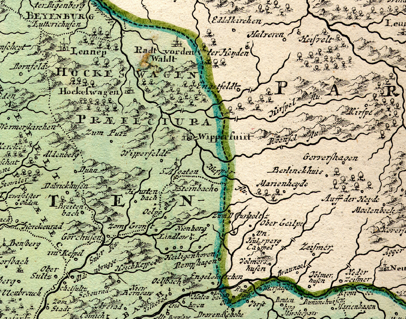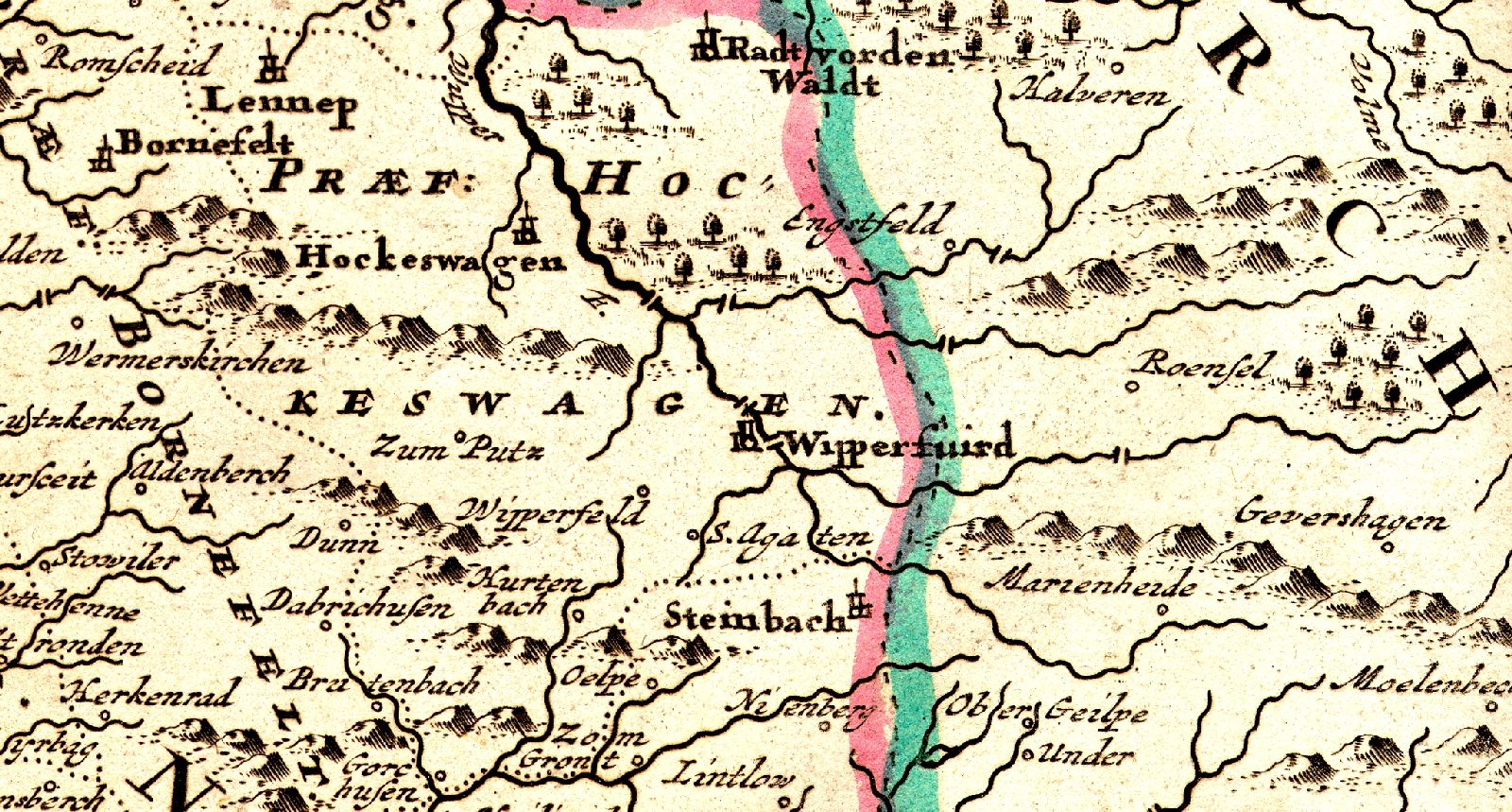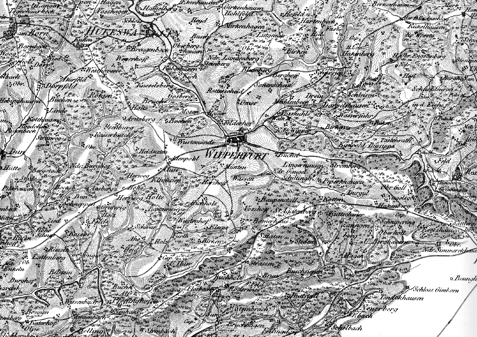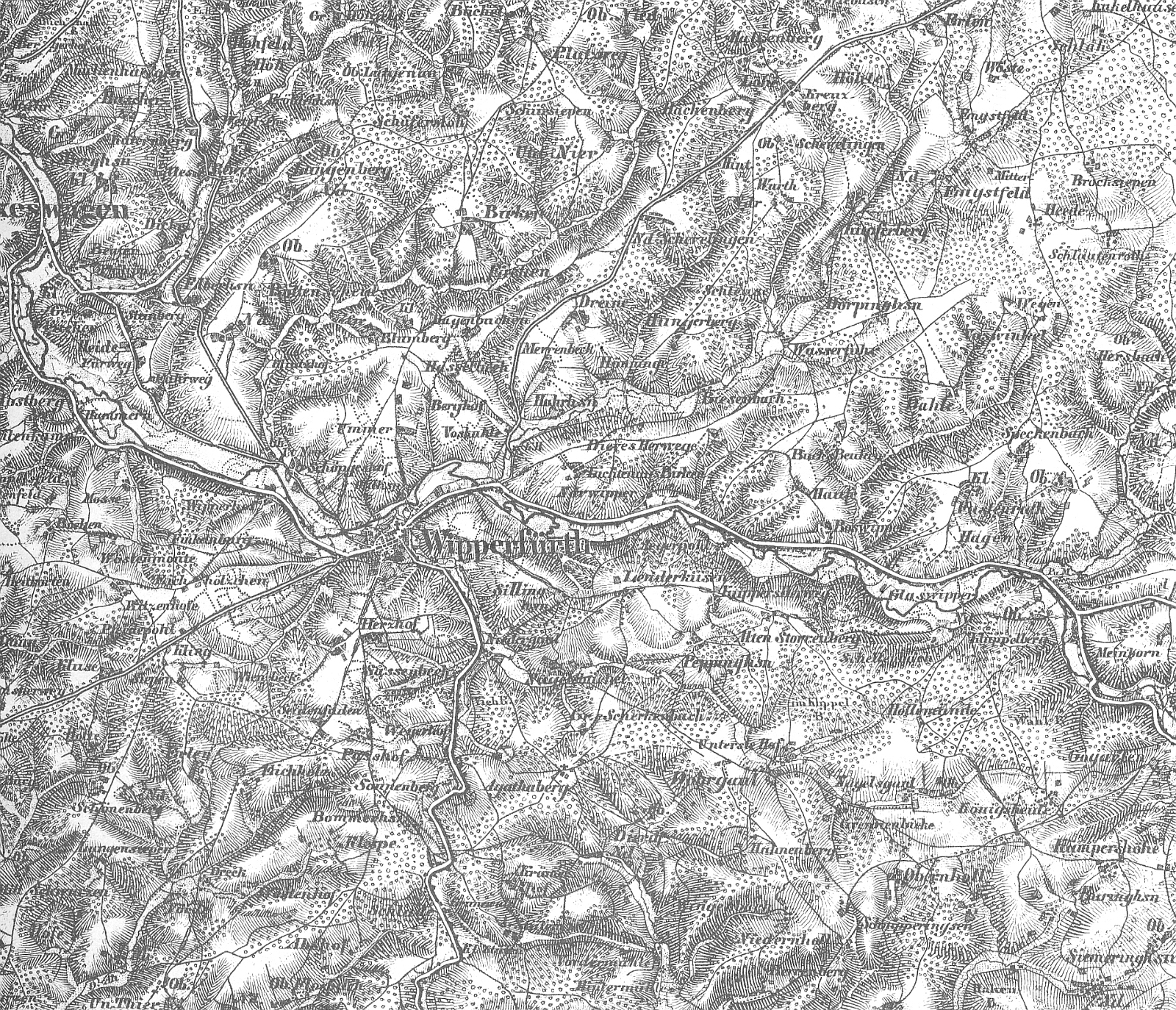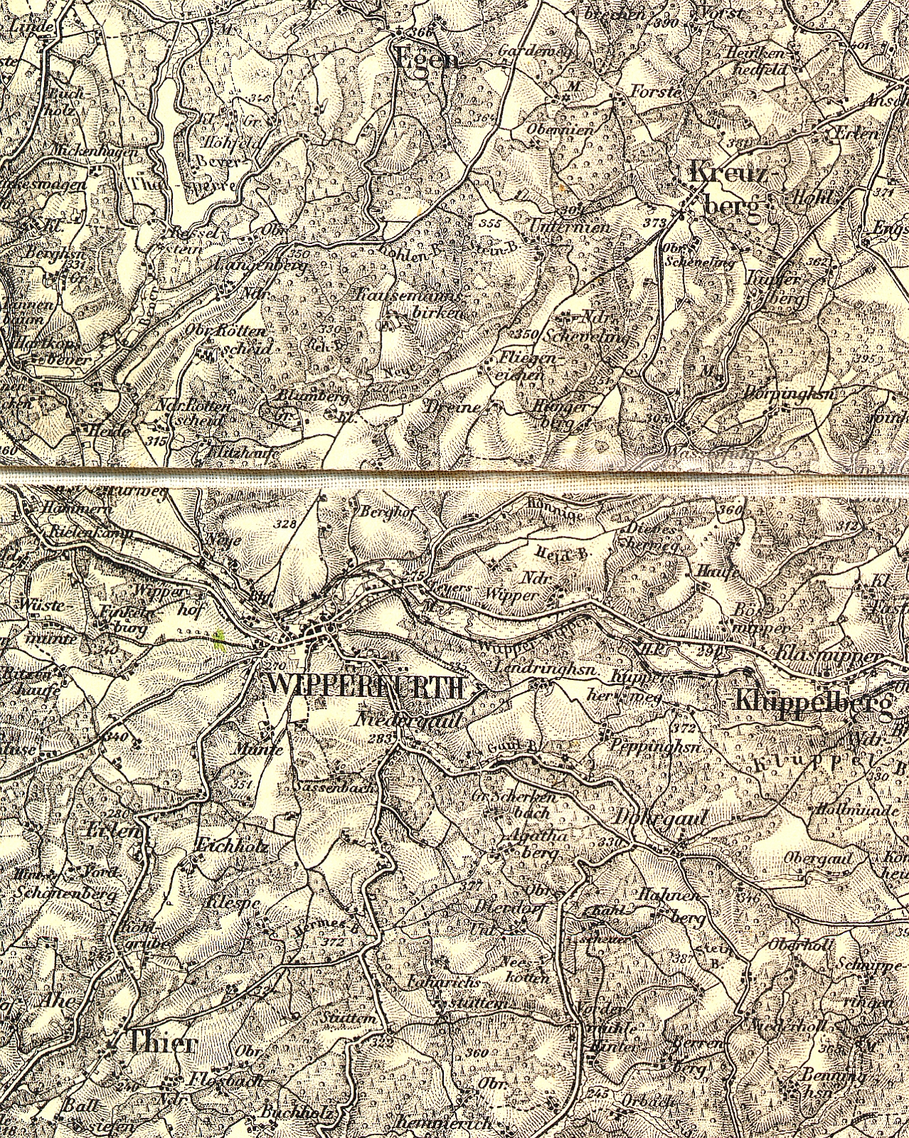 Linie, das historische Kartenbild in Großraum Wipperfürth darzustellen.