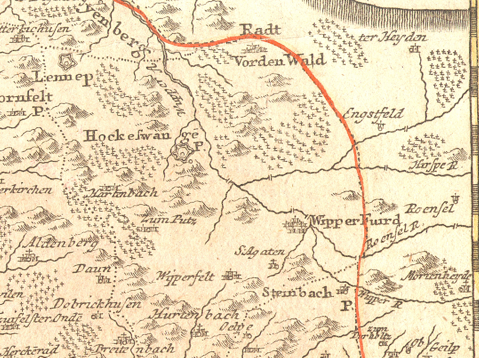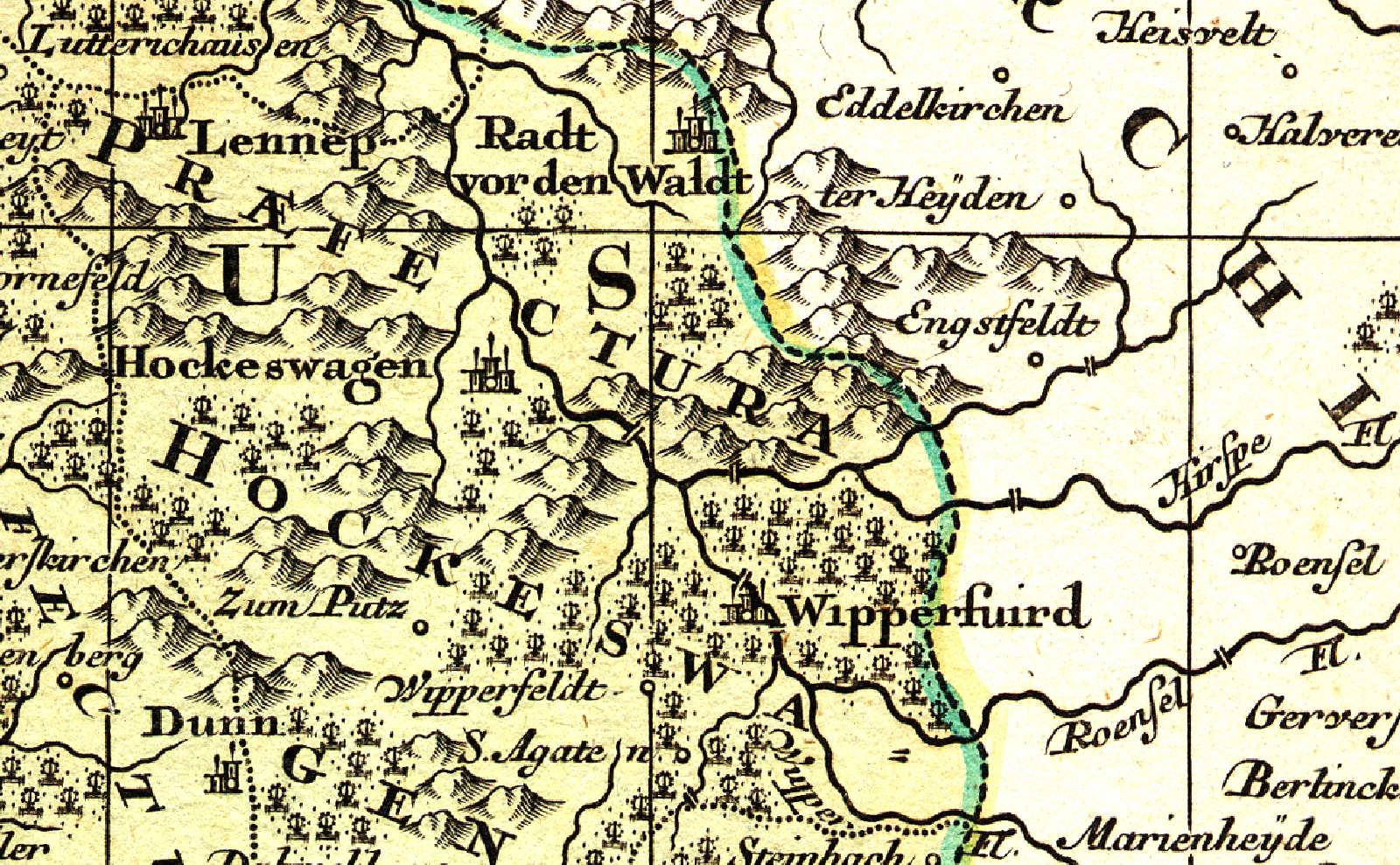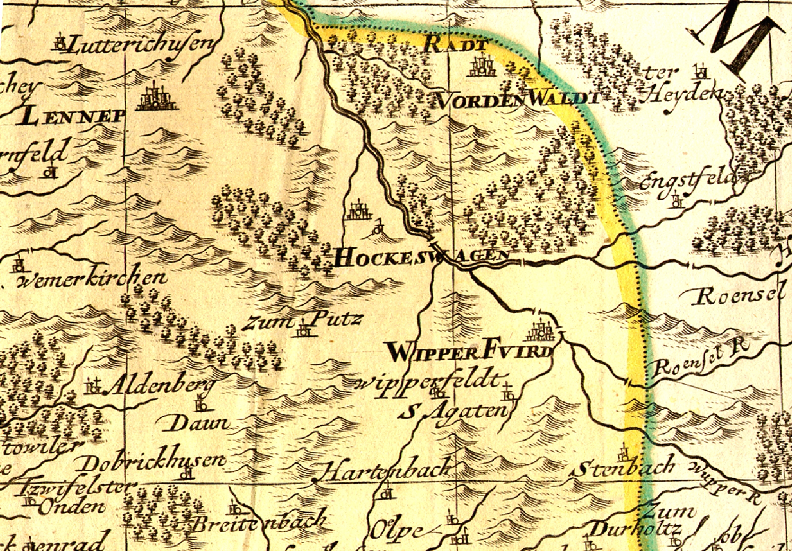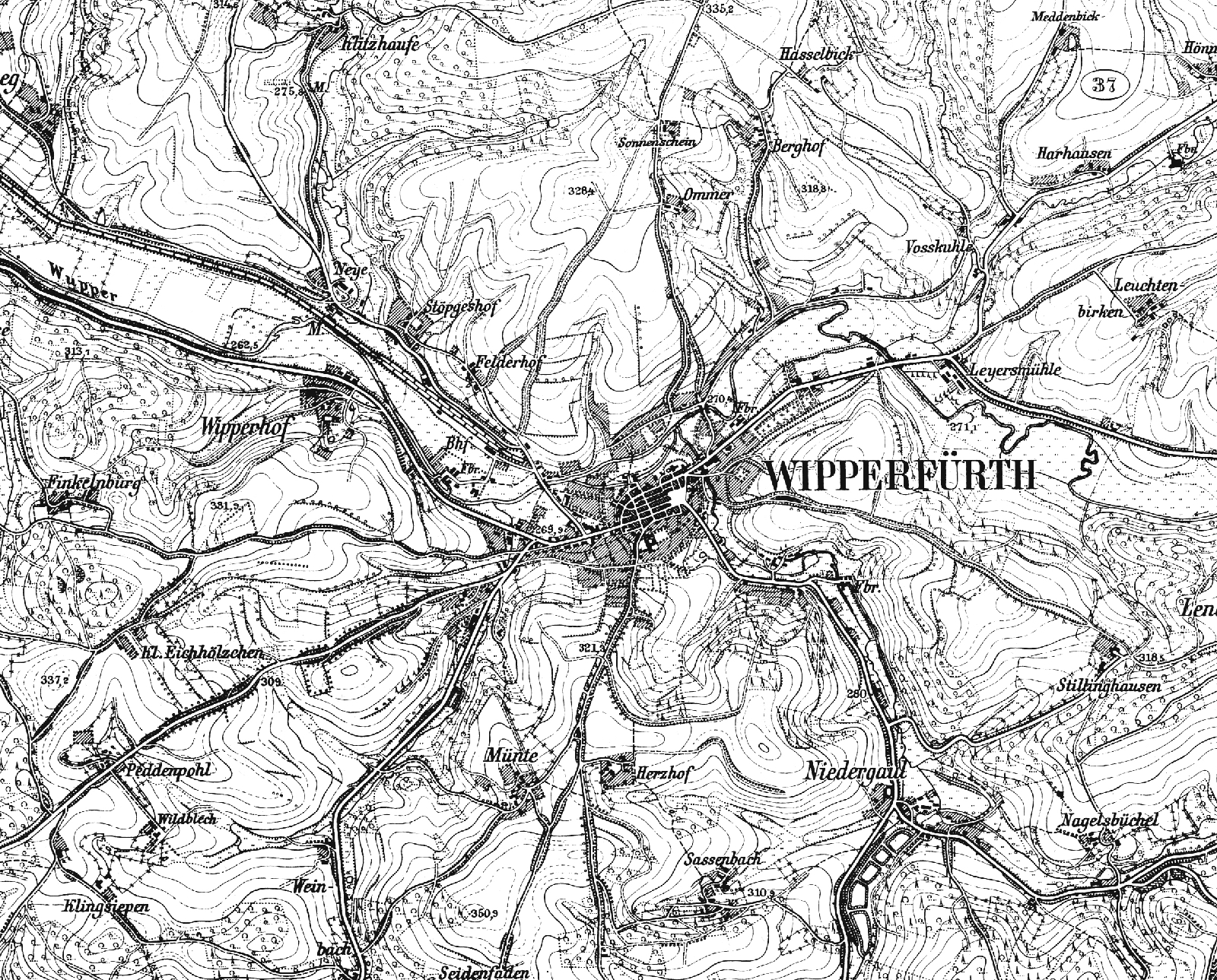 Linie, das historische Kartenbild in Großraum Wipperfürth darzustellen.