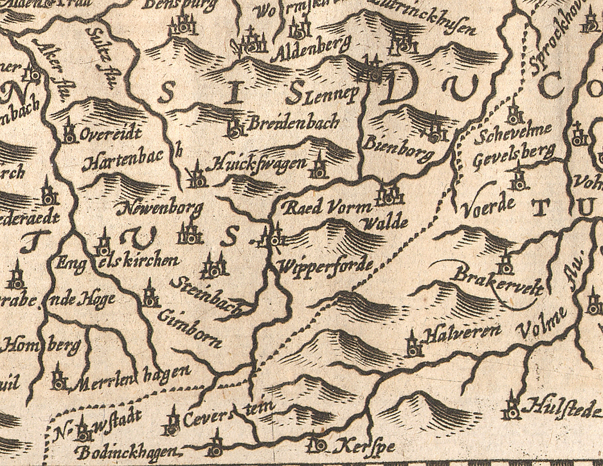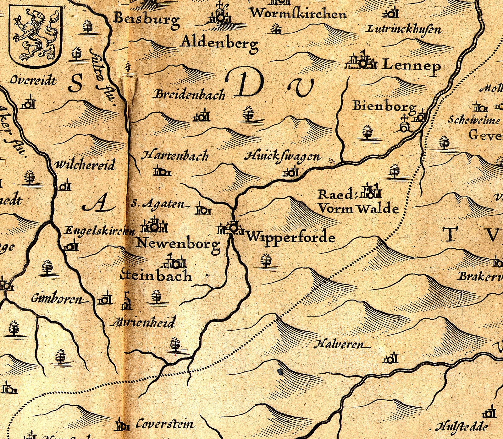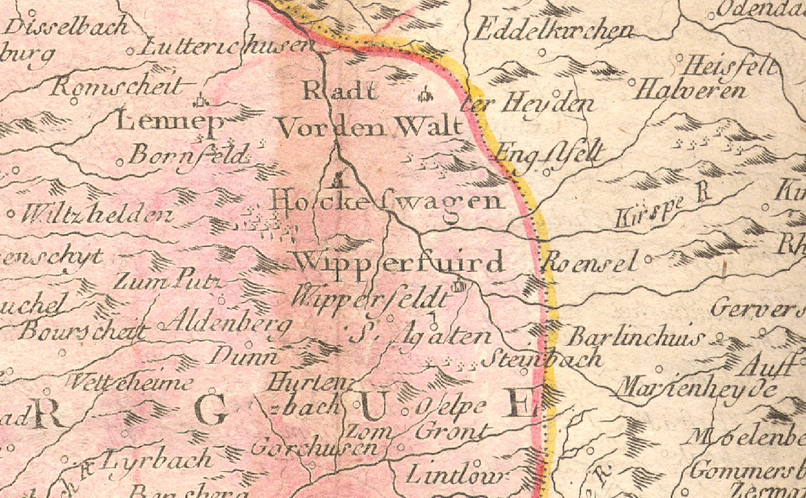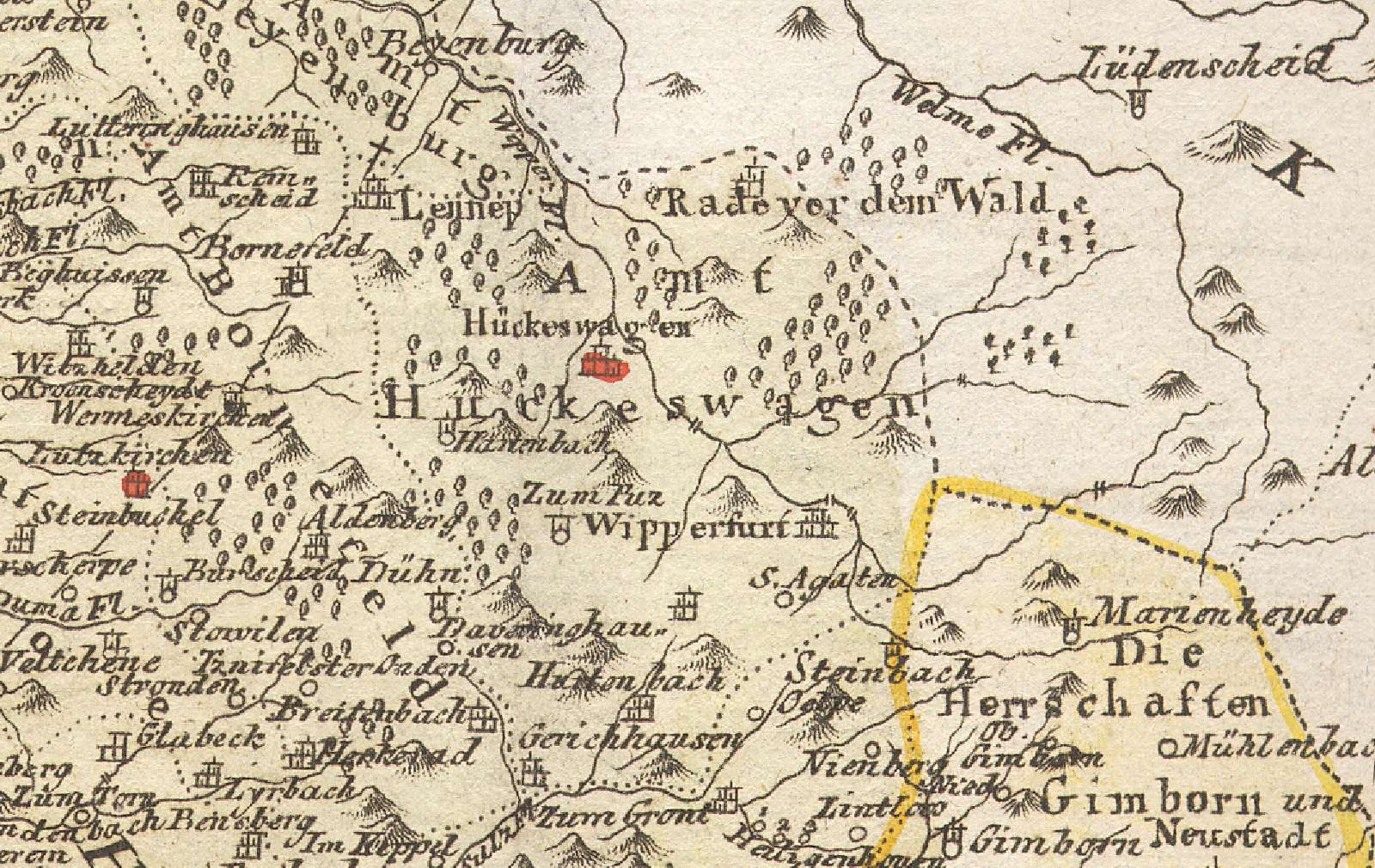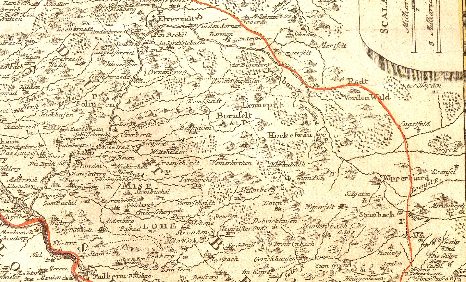 Linie, das historische Kartenbild in Großraum Wipperfürth darzustellen.