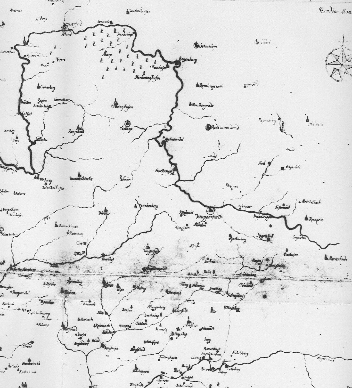 seiner Karte des Bergischen Landes. Genordete Karten gab es mehrheitlich